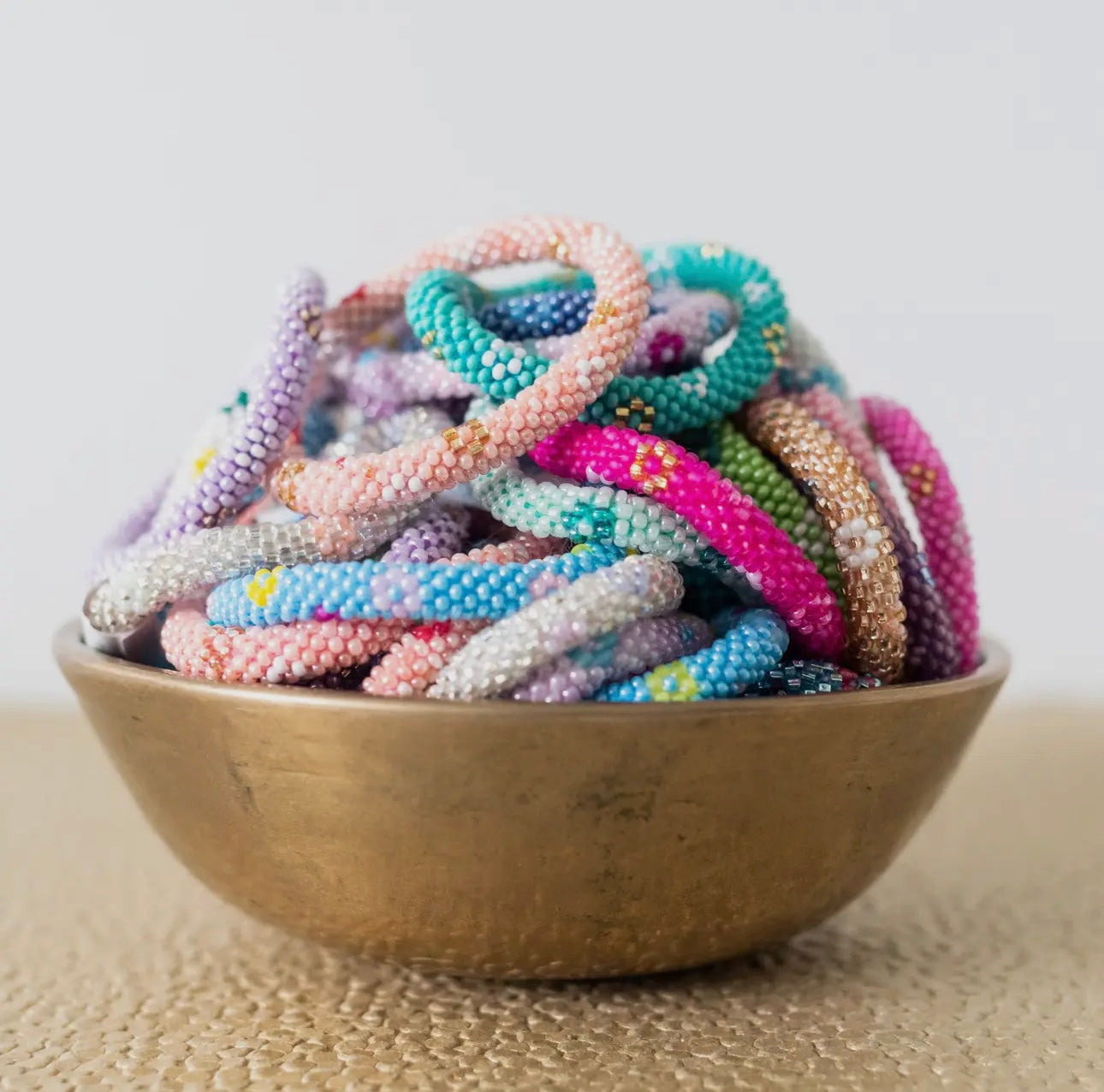 Our Flower Power Roll-On® Bracelets are perfect for your little one. This set includes a wide variety of colors ranging from blues and greens to pinks and purples all with our flower design. These handmade bracelets will add a cute pop of color and fun to your child’s wrist.